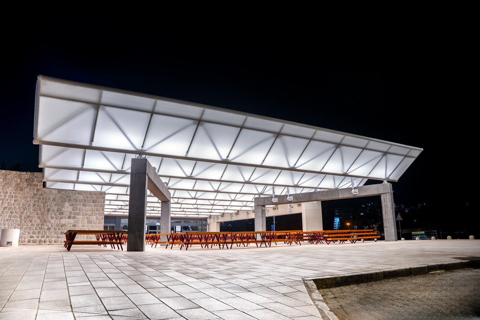 Tržnica je također opremljena pomičnim prodajnim stolovima i dodatnom pratećom opremom, što omogućuje laku prilagodbu prostora različitim namjenama. Okolne površine pločnika su obnovljene, a postavljeni su podzemni spremnici za otpad kako bi se poboljšala funkcionalnost i vizualni izgled.