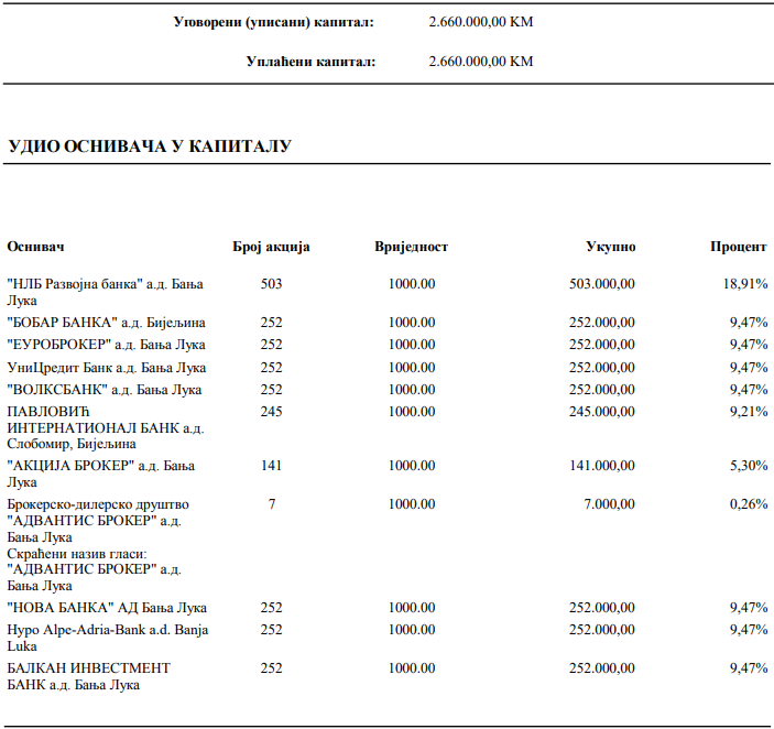 Osnivači banjalučka berze ( izvod iz sudskog registra)